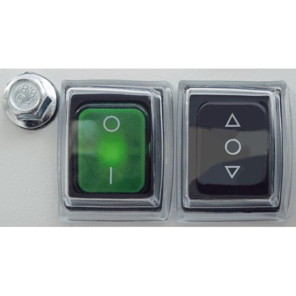 Das Bedienpanel mit robusten, staub- und wasserdichten Wippschaltern ist für die manuelle Steuerung der Funktionen.